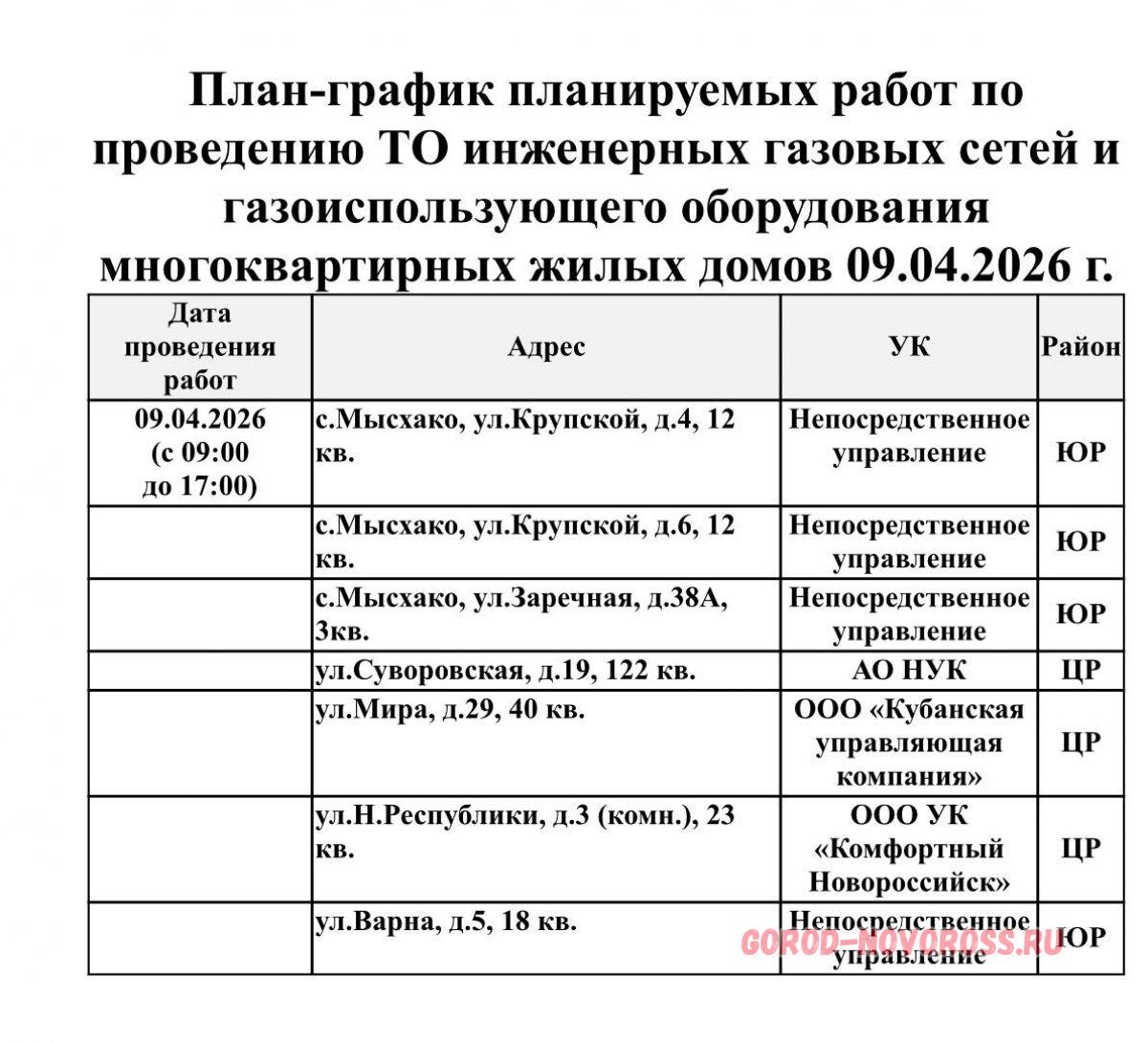 Плановое и срочное отключение электро- и газоснабжения в Новороссийске 09.04.2026